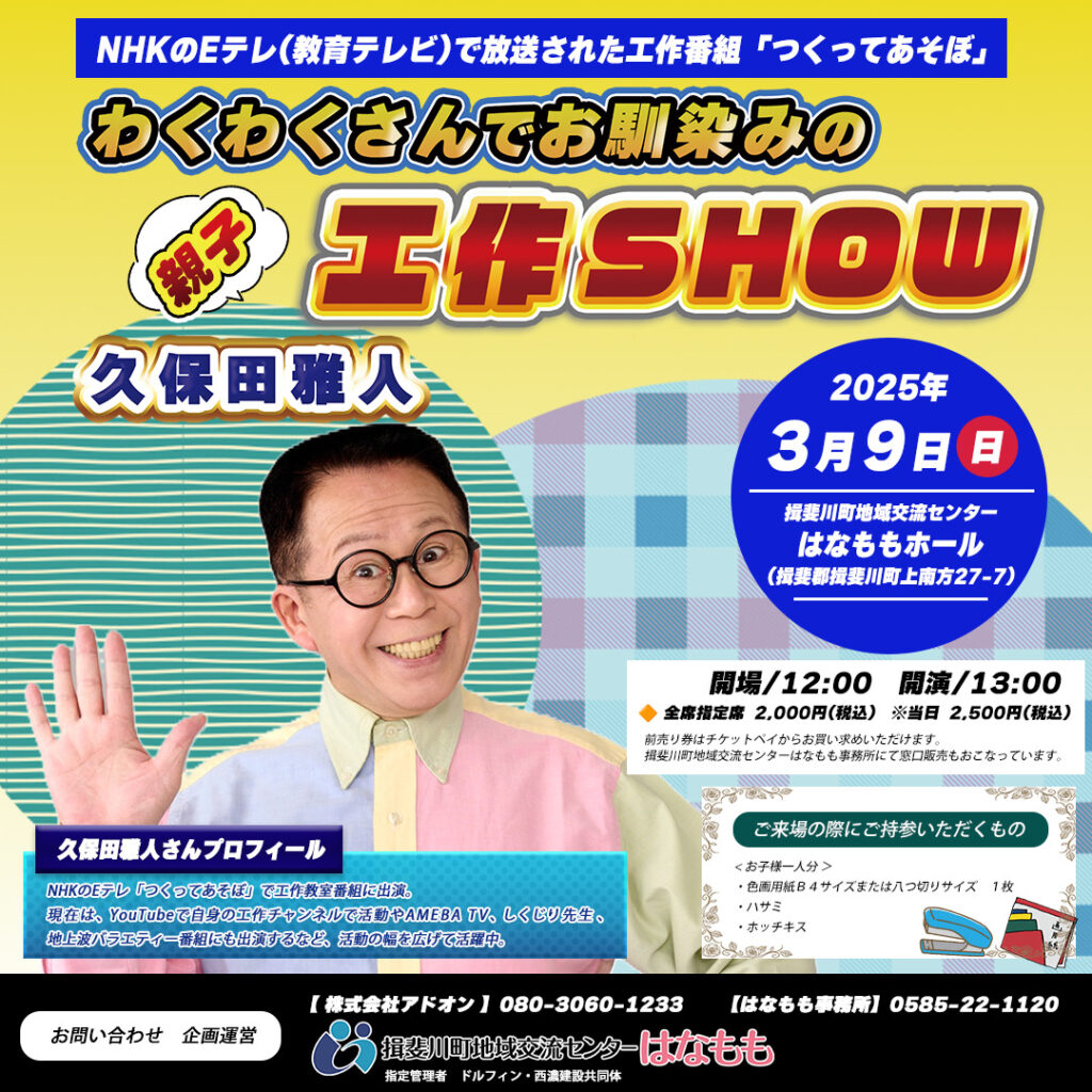 イベントプロモーション:わくわくさんでお馴染みの久保田雅人親子工作SHOW